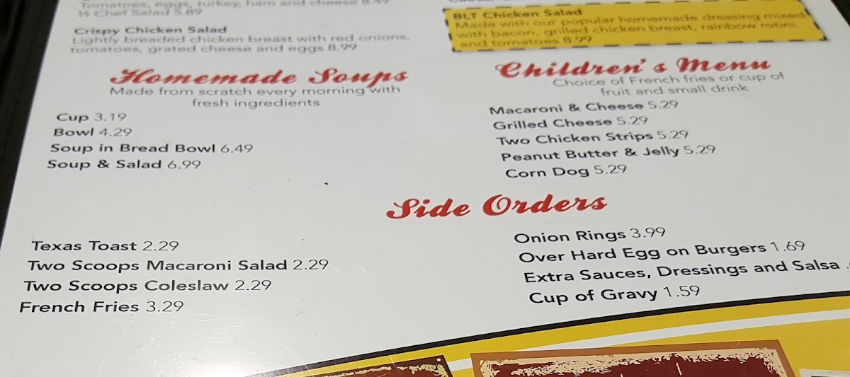 This menu is best enjoyed during casual mornings, leisurely lunches, or when gathering with friends and family for comfort food that feels both nostalgic and welcoming. The straightforward approach to hearty dishes and timeless desserts aligns well with the warm, community-oriented feel of the restaurant.